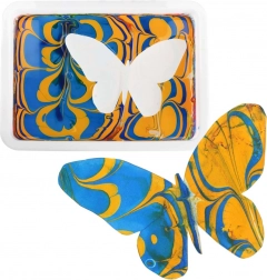 Découvrez la magie de la technique EBRU – peinture à la surface de l’eau, où les couleurs se transforment en motifs marbrés et se transfèrent facilement sur le papier comme sur de petits objets. Le kit contient tout ce dont les enfants dès 6 ans ont besoin : 8 pigments à l’eau non toxiques, un plateau de peinture, des papiers, des outils et un tablier de protection. Une activité créative fantastique pour développer l’imagination, la concentration et la motricité fine – propre, ludique et avec un effet WAOUH.