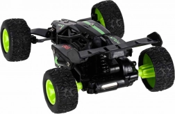 De grandes roues tout-terrain à gros crampons et une suspension bien pensée assurent la maîtrise sur gravier, herbe et terre. Le spoiler arrière améliore la stabilité à vitesse élevée et le châssis robuste résiste aux chocs d’un usage courant. La télécommande à double joysticks permet un pilotage précis même aux débutants.
