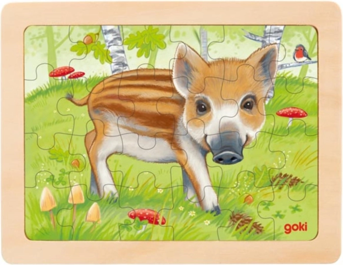 Ce puzzle en bois Goki apporte aux enfants la joie d’assembler tout en soutenant leurs compétences. Grâce à la planche avec bord fraisé, les pièces se placent plus aisément, ce qui fait de ce puzzle un excellent choix pour les débutants. Le motif du mignon petit cochon de la forêt est attrayant et stimule l’invention d’histoires.