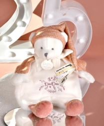 Ce doudou en peluche tout doux en forme d’ourson séduit par son allure tendre et sa finition de qualité. Le bonnet rose, les petites pattes moelleuses comme des chaussons et la broderie discrète Doudou sur le ventre en font un jouet auquel bébé aimera se blottir. Sa surface douce stimule les sens et apaise à l’endormissement.