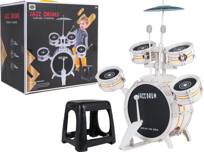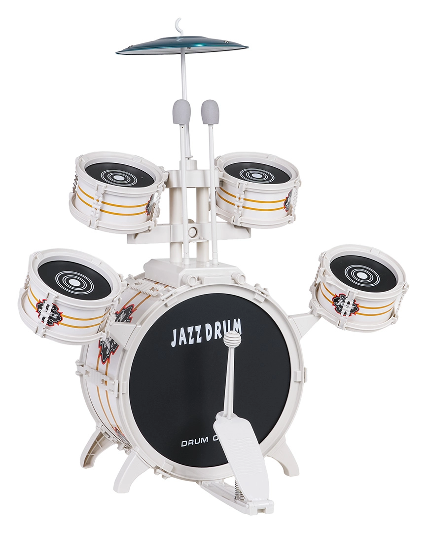 Cette batterie attrayante pour enfants de couleur blanche a été conçue avec le souci du détail pour rappeler un instrument professionnel. Les enfants apprécieront de jouer sur la grande grosse caisse avec pédale, quatre petits toms et la cymbale en métal. L’emballage comprend également un tabouret stable et une paire de baguettes, afin qu’ils puissent commencer à jouer immédiatement après l’assemblage.