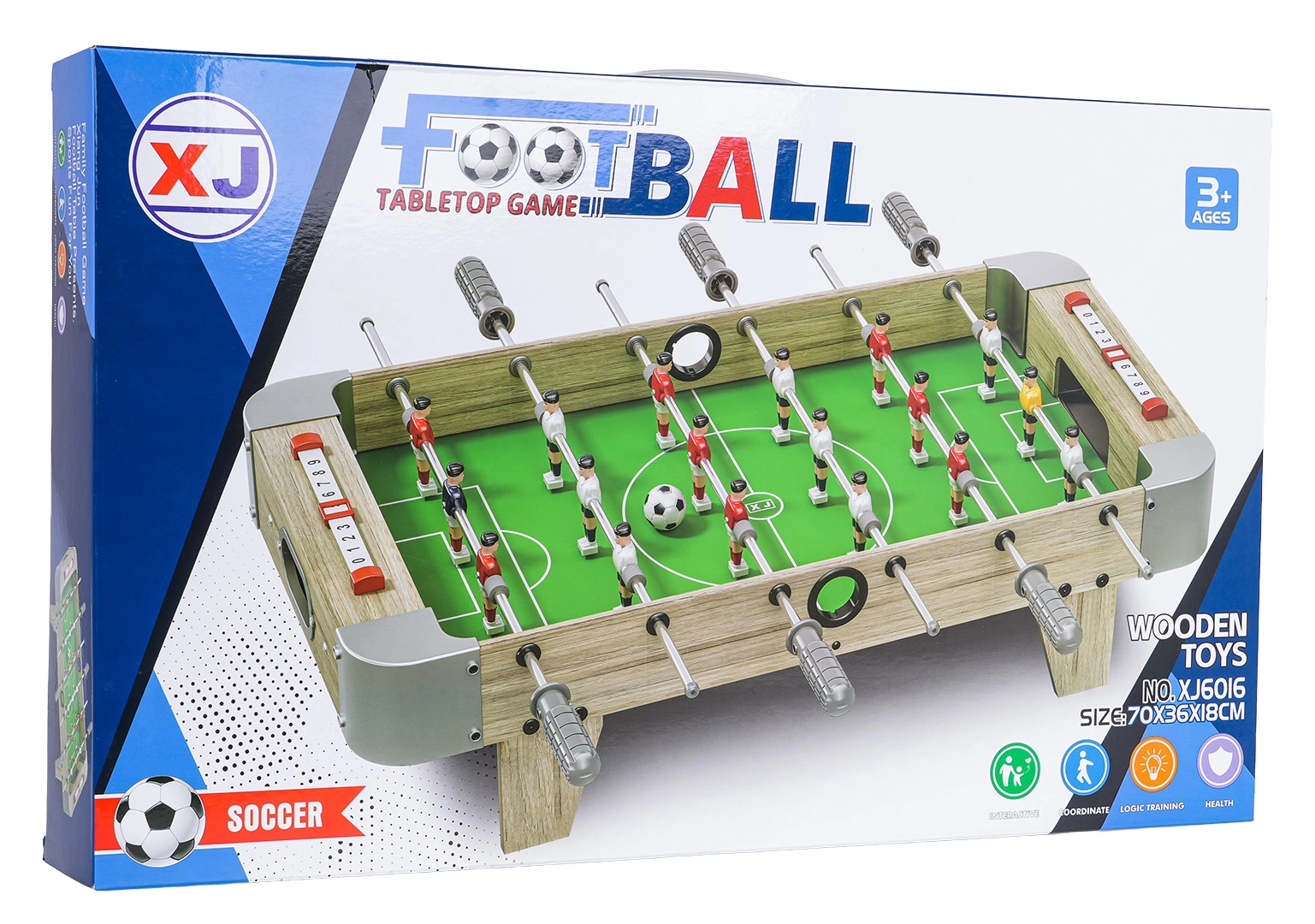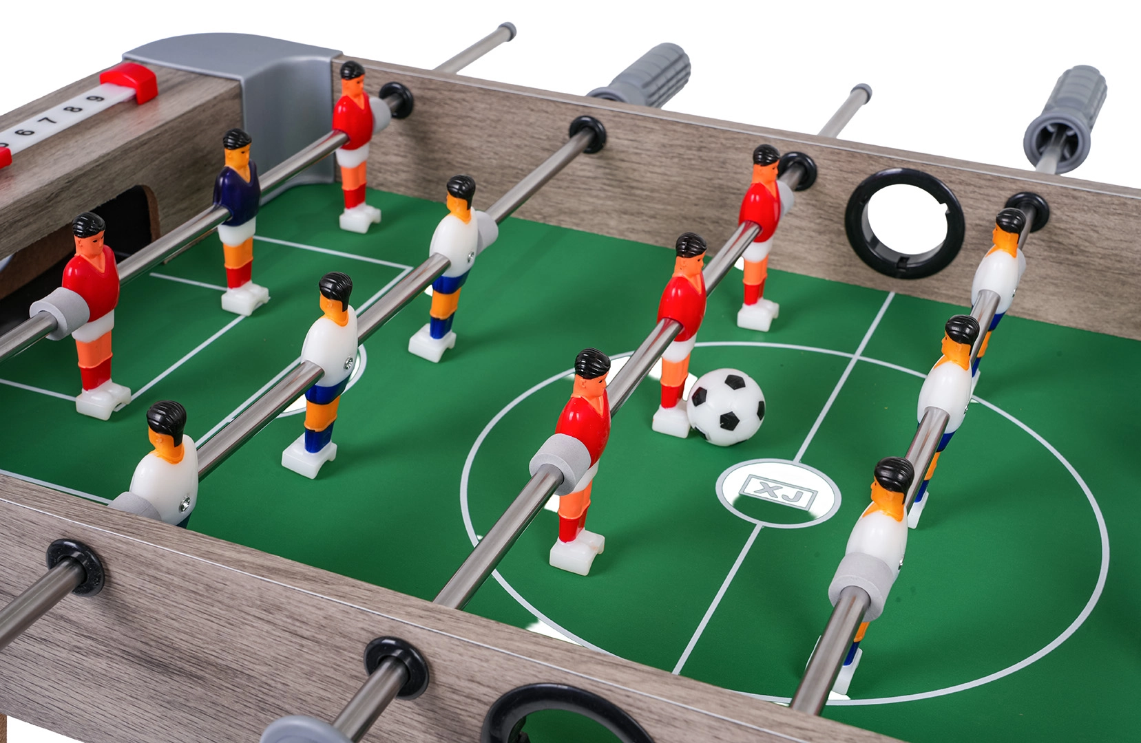 Ce baby-foot de table associe des dimensions compactes à une fabrication durable : il tient sur n’importe quelle table et vous accompagne partout. Le terrain vert au marquage net, les figurines de joueurs réalistes et les barres métalliques fluides garantissent un jeu dynamique et équitable.