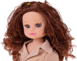 La jolie poupée Kalinka est prête pour les aventures d’automne. Elle a de riches cheveux châtains bouclés, des membres articulés et porte un trench-coat beige élégant avec ceinture, des leggings et des bottines noires. Grâce à sa fonction sonore, une mélodie joyeuse retentit lorsqu’on appuie sur son ventre. Idéale pour le jeu créatif, le coiffage et l’habillage.