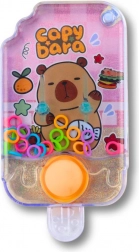 Amusant jeu aquatique avec le mignon motif CAPYBARA en forme de glace, pour le plaisir des enfants comme des adultes. Il suffit d’appuyer sur le bouton pour mettre l’eau en mouvement et viser les anneaux colorés sur les picots. Le jeu est sans piles, compact, léger et idéal pour les voyages. Il développe la patience, la motricité fine et offre de longues minutes de divertissement.