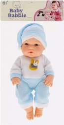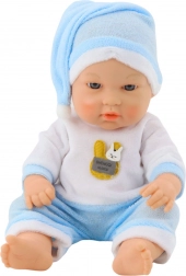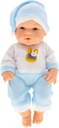 Cette charmante poupée bébé est vêtue d’un pyjama bleu et blanc tout doux avec un petit bonnet et un écusson décoratif. Grâce à ses matériaux agréables et à sa longueur compacte de 30 cm, elle se tient et se porte facilement, idéale même pour les tout-petits.