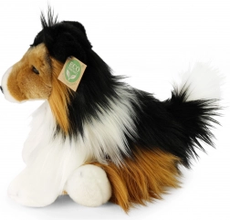 Sa longue fourrure moelleuse dans des tons de blanc, brun et noir donne au colley en peluche un aspect vivant et un toucher irrésistiblement agréable pour les enfants comme pour les adultes.