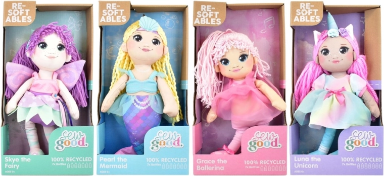Fabriquée à partir d’environ 7 bouteilles en plastique recyclées par poupée