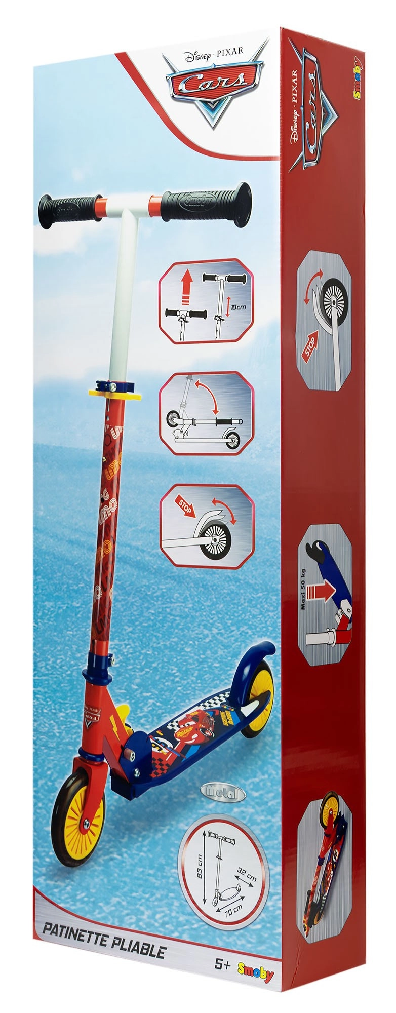 Trottinette stylée avec le héros préféré Flash McQueen du dessin animé Cars CARS, offrant beaucoup de fun et favorisant l’équilibre. Grâce à son cadre en aluminium léger et sa conception pliable, elle se transporte et se range facilement. La hauteur réglable du guidon s’adapte confortablement à la taille de l’enfant, tandis que la surface antidérapante et le frein au pied assurent une conduite en toute sécurité.