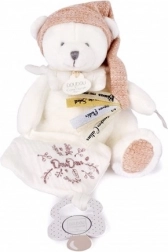 Ce tendre doudou ourson est plus qu’un jouet – c’est un compagnon câlin, une couverture réconfortante et un assistant pratique à la fois. Au bout de la couverture, vous trouverez une attache pour tétine afin que la tétine reste toujours à portée de main et propre. Le petit bonnet rose, le col blanc et les détails brodés donnent à l’ourson une allure amicale que les enfants adopteront immédiatement.