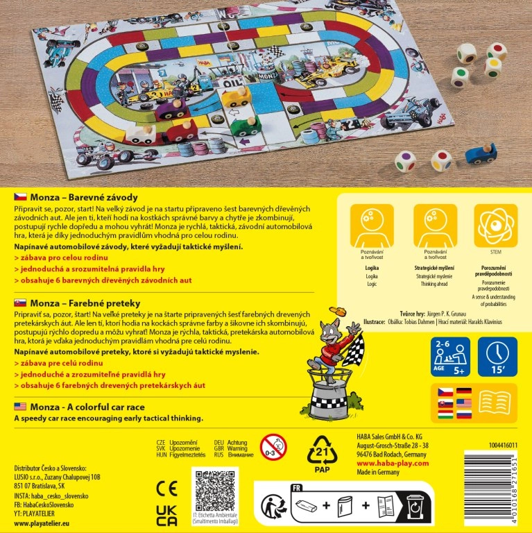 Le jeu familial amusant Monza de la marque Haba propose des courses rapides mêlant tactique et chance. Grâce à des règles simples, il est idéal pour les enfants comme pour les adultes, se joue à 2 à 6 joueurs et une partie dure environ 15 minutes.