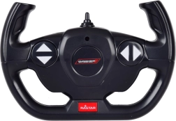 La voiture RC se pilote avec la radio à volant fournie et gère marche avant/arrière et braquage gauche/droite. Sa construction robuste en noir mat avec jantes argentées et le « blower » typique en fait une pièce spectaculaire sur l’étagère comme un partenaire d’action pour rouler à la maison.
