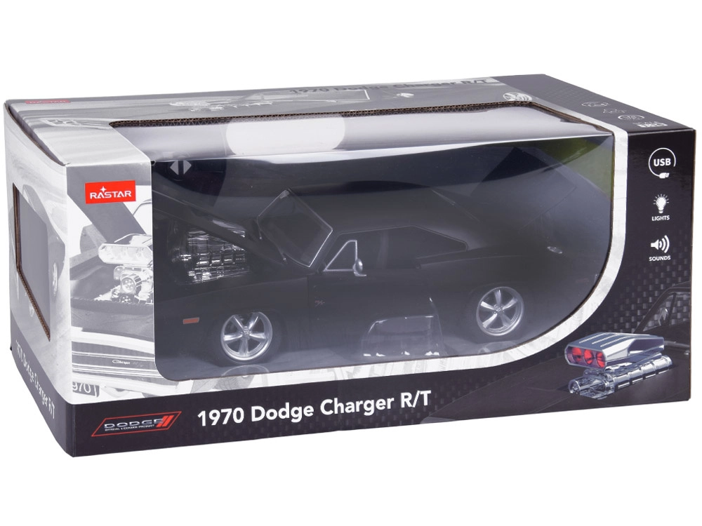 L’icône des routes des années 70, maintenant dans votre main. Ce modèle radiocommandé reproduit fidèlement les lignes caractéristiques de la CHARGER R/T originale et ajoute un éclairage orange et rouge ainsi que des sons de moteur et crissements de pneus qui renforcent l’immersion. Grâce aux éléments ouvrants, découvrez l’habitacle détaillé et le compartiment moteur.