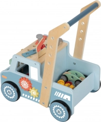 Ce chariot de marche astucieux en forme de camion bleu est l’aide idéale pour les premiers pas et un atelier STEM ludique. La structure en bois robuste offre de la stabilité, tandis que les engrenages rotatifs, transmissions et plaques de montage invitent à explorer les principes de la mécanique et à développer la coordination.