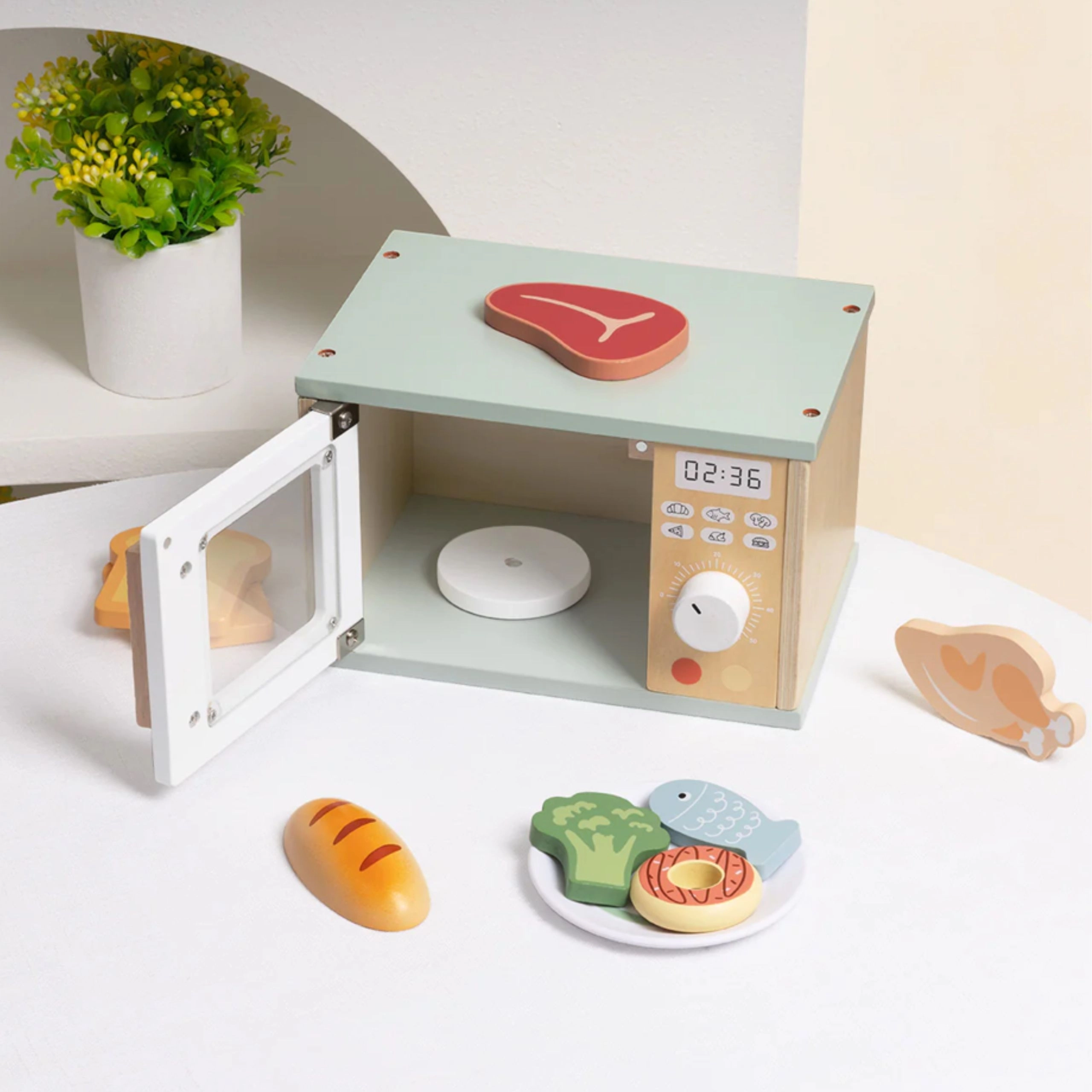 Offrez aux enfants leur propre « cuisine » avec le micro-ondes en bois TOOKY TOY. Des détails réalistes comme la porte à charnière, le plateau tournant et l’affichage numérique stimulent la créativité et l’imagination, tandis que la manipulation des boutons et des aliments développe la motricité fine et la pensée logique. Idéal pour la cuisine enfant, la salle de jeux ou la maternelle.