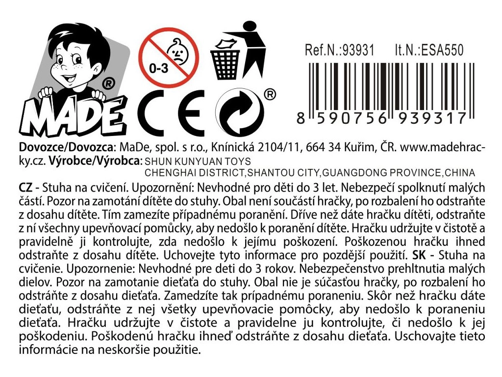 Léger et sûr, le ruban d’exercice MADe aux dimensions 29 × 14 cm est idéal pour les enfants à partir de 3 ans. Il offre une large palette de couleurs, ne nécessite aucune pile et est fabriqué en matière textile agréable, favorisant le mouvement, la coordination et l’amusement.
