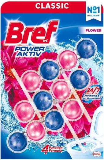 Le bloc WC Bref Power Aktiv Flower offre une hygiène fiable et un parfum agréable au quotidien. Grâce à la combinaison d’ingrédients actifs, il combat efficacement les saletés et laisse la cuvette éclatante de propreté et délicatement parfumée.