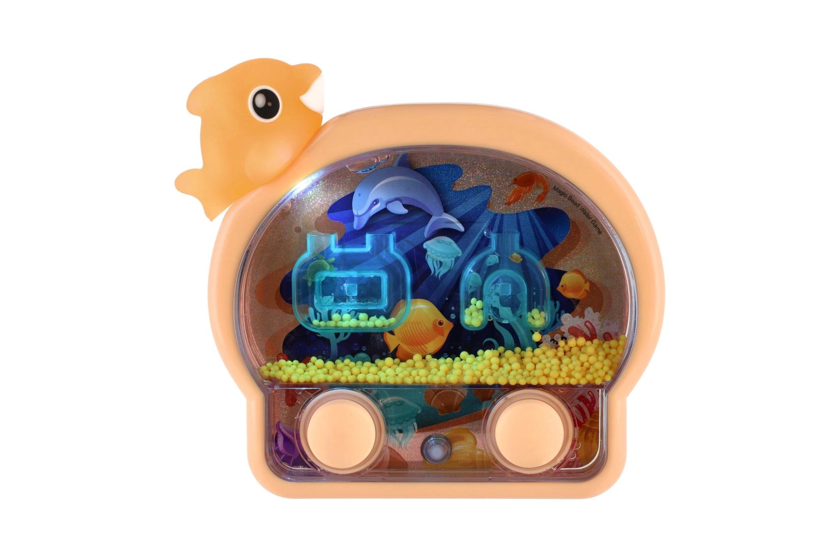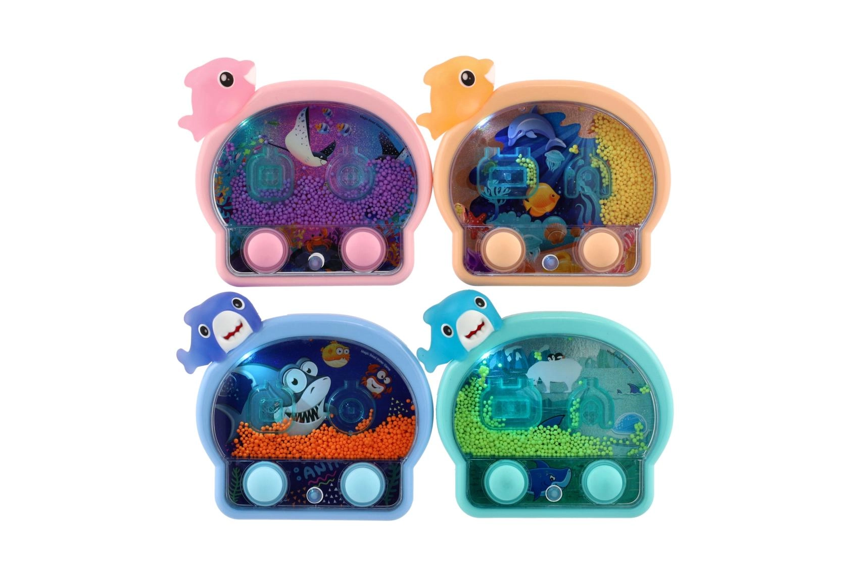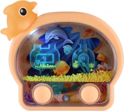 Amusant jeu d’eau de poche en forme d’animal marin qui met l’ambiance à la maison comme en voyage. En appuyant sur les boutons, vous faites bouger les anneaux et les billes dans l’eau et tentez de les placer sur les cibles. Le jeu développe la motricité fine, la patience et le sens de l’observation et, grâce à l’effet lumineux, il divertit même dans l’obscurité.