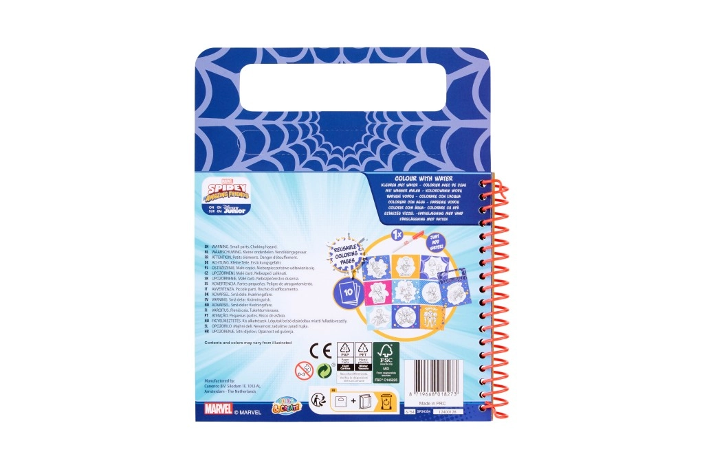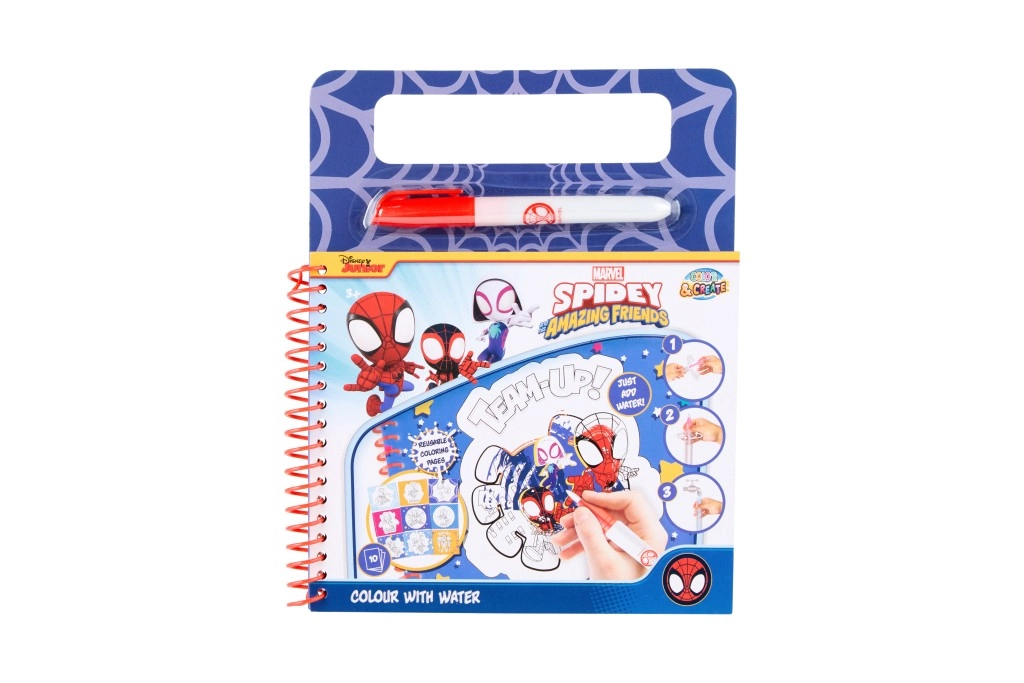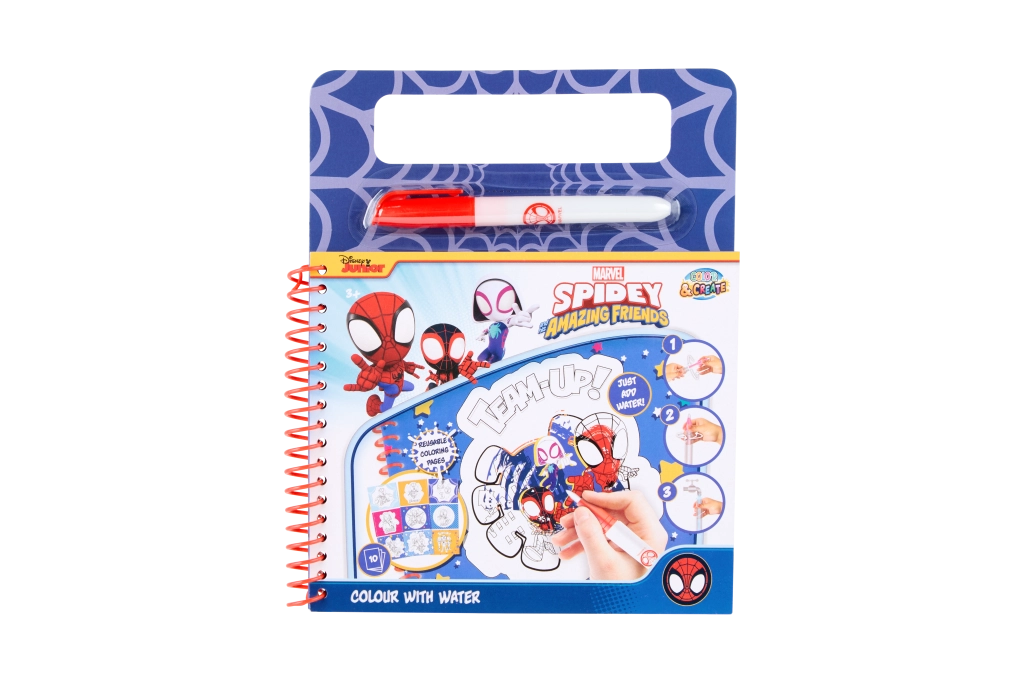 Ce bloc de coloriage à l’eau portable au format A5 offre aux enfants un coloriage facile et propre. Il suffit de remplir le stylo à eau, de passer sur la page et les couleurs cachées avec les héros préférés de l’univers SPIDEY apparaissent instantanément. Une fois la page sèche, les couleurs s’estompent et l’enfant peut recommencer encore et encore.