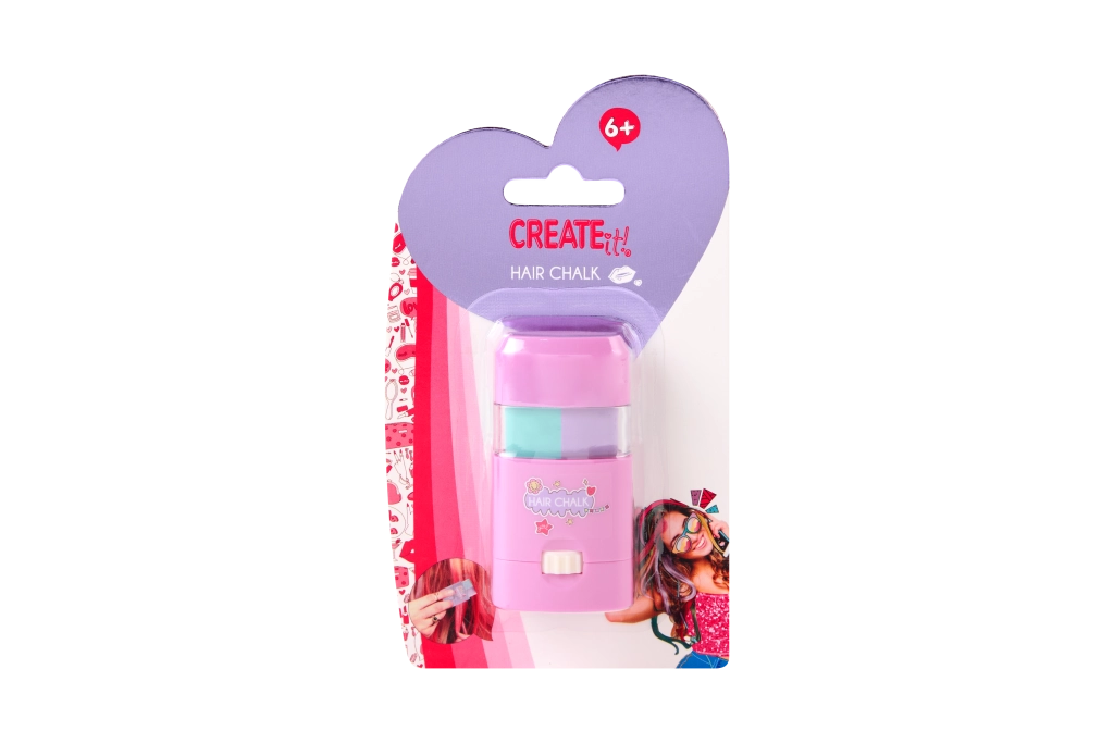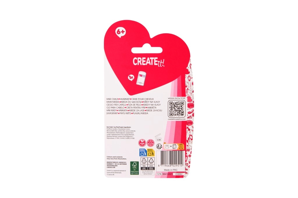 Des couleurs joyeuses, des mains propres et zéro effort. Les craies pour cheveux compactes CREATE IT! sont dissimulées dans un applicateur plastique pratique avec fenêtre, garantissant une application précise et rapide sans désordre. Quelques passages suffisent pour obtenir des mèches ludiques et colorées.