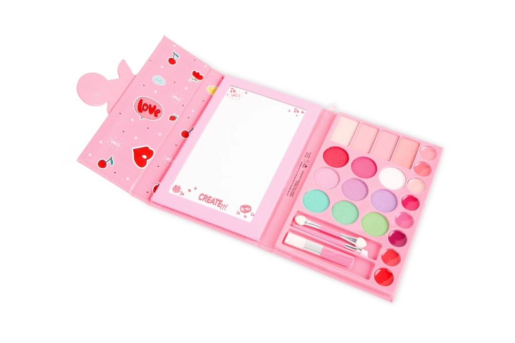 Tout ce dont vous avez besoin est à portée de main : 9 couleurs de fards à paupières pour mélanger et estomper, 8 nuances de rouges à lèvres pour des combinaisons amusantes, 4× fond de teint pour unifier le teint, ainsi que des applicateurs et pinceaux pratiques pour une application précise. Le miroir intégré facilite les retouches à tout moment et en tout lieu.