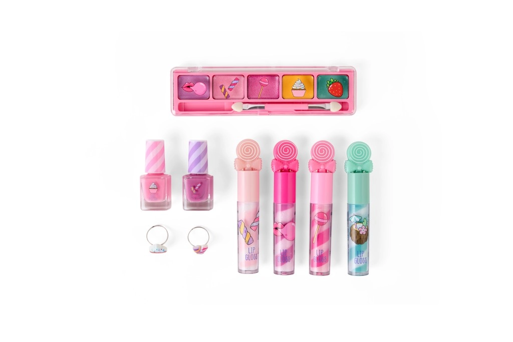 Un design inspiré des confiseries, des dimensions compactes et un emballage cadeau attrayant font de ce coffret une excellente idée pour un anniversaire ou une fête. Parfait pour les enfants qui aiment les accessoires de mode et veulent imiter les adultes de manière sûre et ludique.