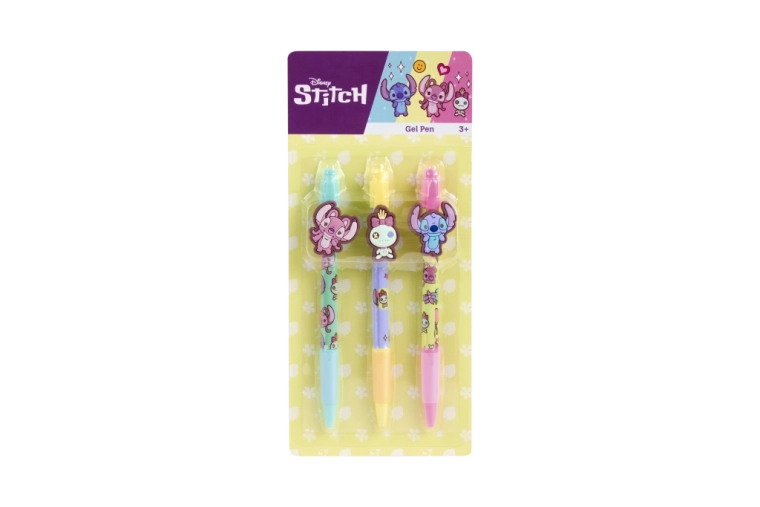 Découvrez le set de stylos gel STITCH qui combine un design ludique et un excellent confort d’écriture. Le flux d’encre régulier et la prise en main confortable assurent une écriture agréable et continue – parfaite pour l’école, le travail et le temps libre. Le grand clip permet de les fixer rapidement à un cahier, un agenda ou une poche.