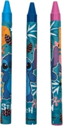 Amusement immédiat sans achats supplémentaires – trois crayons de cire au motif STITCH pour un coloriage confortable.