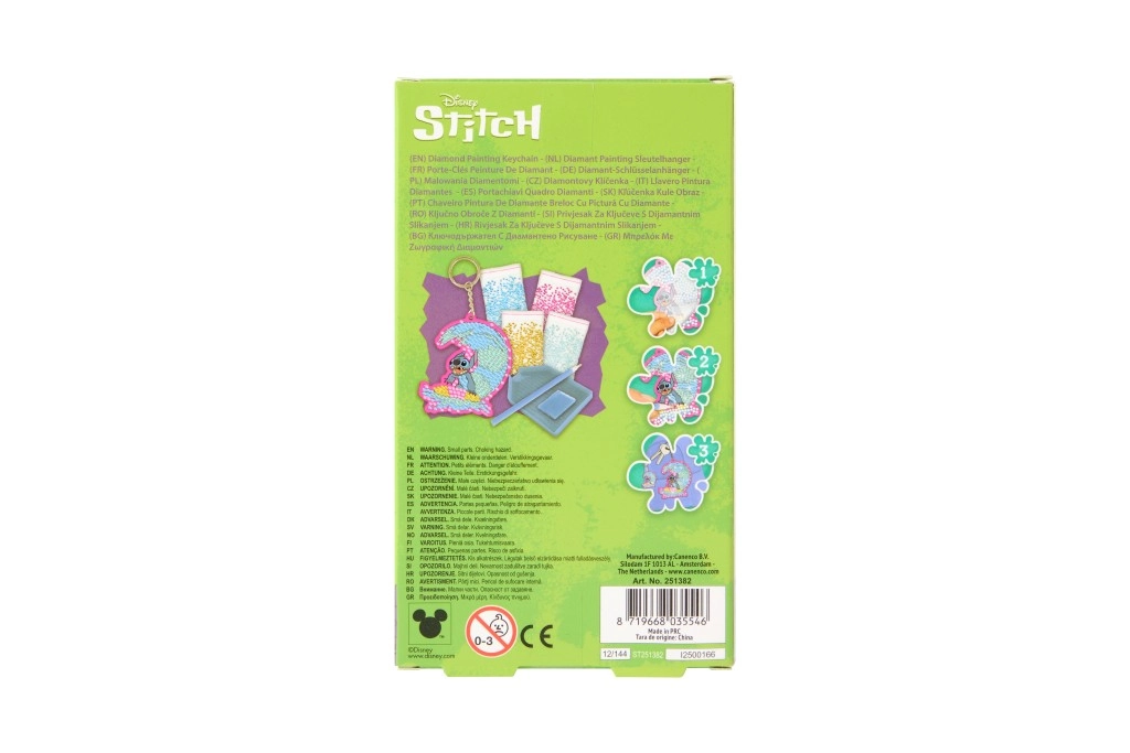 Tout ce dont vous avez besoin dans un seul coffret : porte-clés motif STITCH, strass, stylet, cire et plateau. Ouvrez, créez et profitez d’un résultat lumineux.