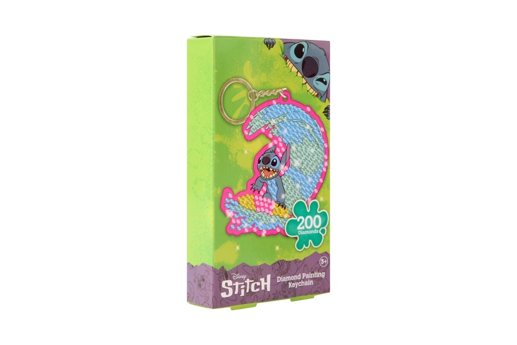 Découvrez une activité créative et relaxante avec ce kit DIY de peinture diamant. Le motif Stitch surfeur se distingue par ses couleurs vives et l’éclat des petits strass que vous positionnez simplement à l’aide du stylet fourni. Le porte-clés fini est léger, résistant et prêt à orner vos clés ou votre sac.