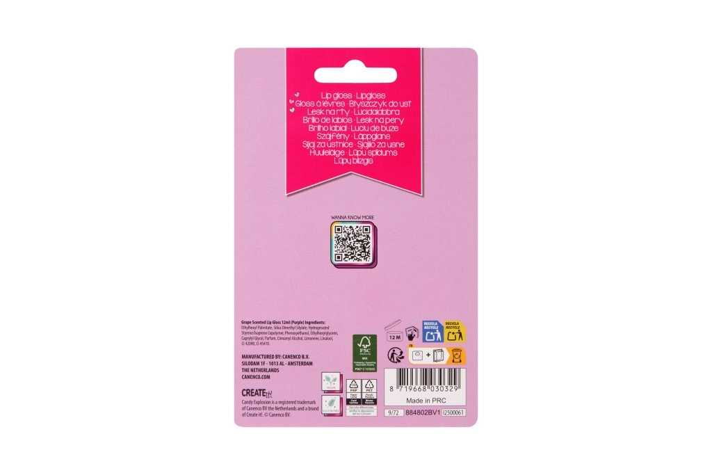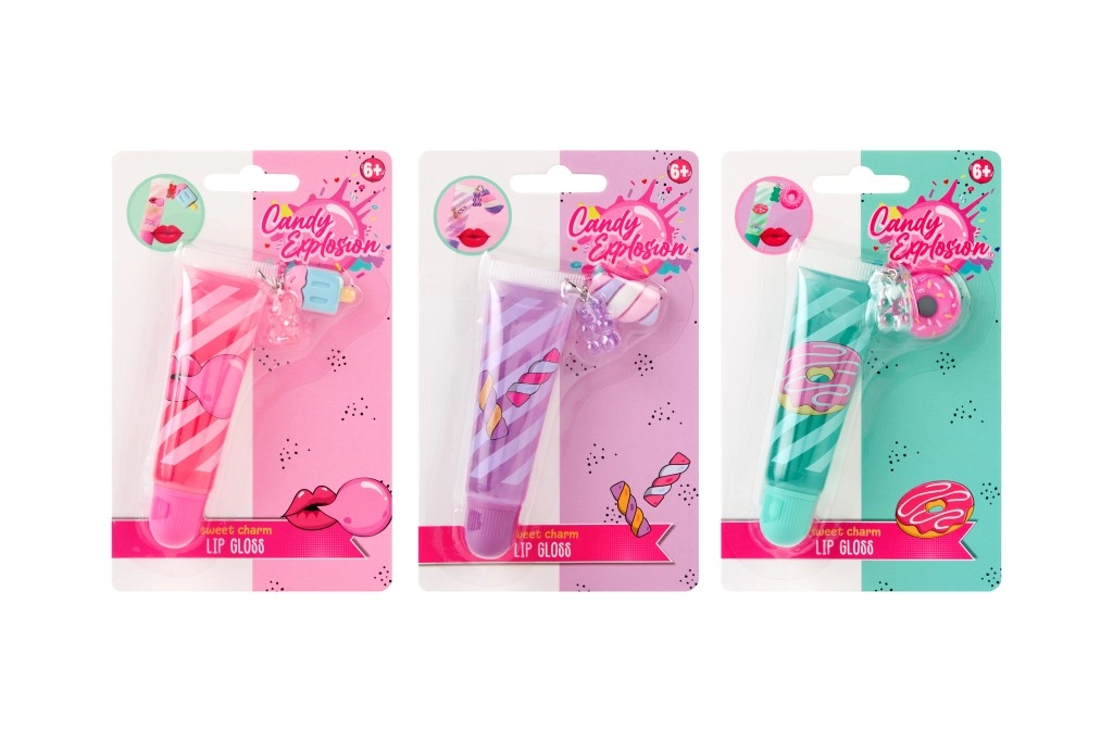 Égayez le maquillage quotidien avec le gloss à lèvres ludique Candy Explosion. Sa texture légère et non collante s’applique facilement directement depuis le tube souple, laissant les lèvres délicatement brillantes et agréablement nourries. Chaque variante est complétée par un pendentif adorable, grâce auquel le gloss se fixe aisément à un sac à dos ou à des clés.
