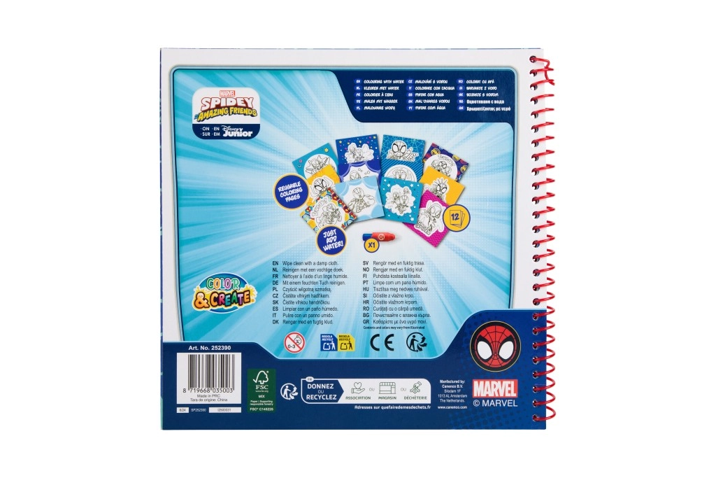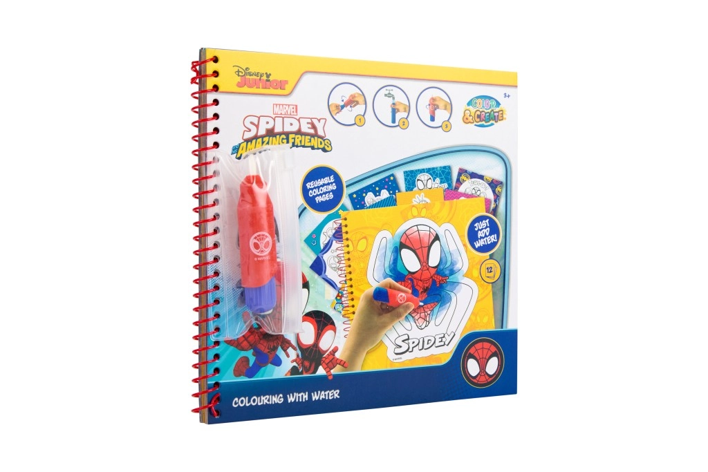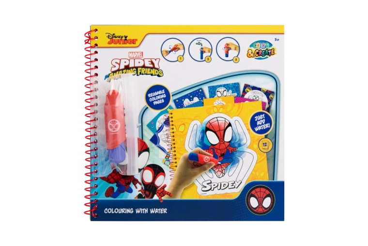 Le livre de coloriage à l’eau Spidey offre aux enfants des heures de création sans la moindre salissure. De l’eau suffit – pas de peintures ni de feutres. Une fois l’eau appliquée, des couleurs vives et des illustrations des héros préférés de l’univers Spidey apparaissent sur les pages. Quand l’image sèche, les couleurs disparaissent et les enfants peuvent recommencer encore et encore.