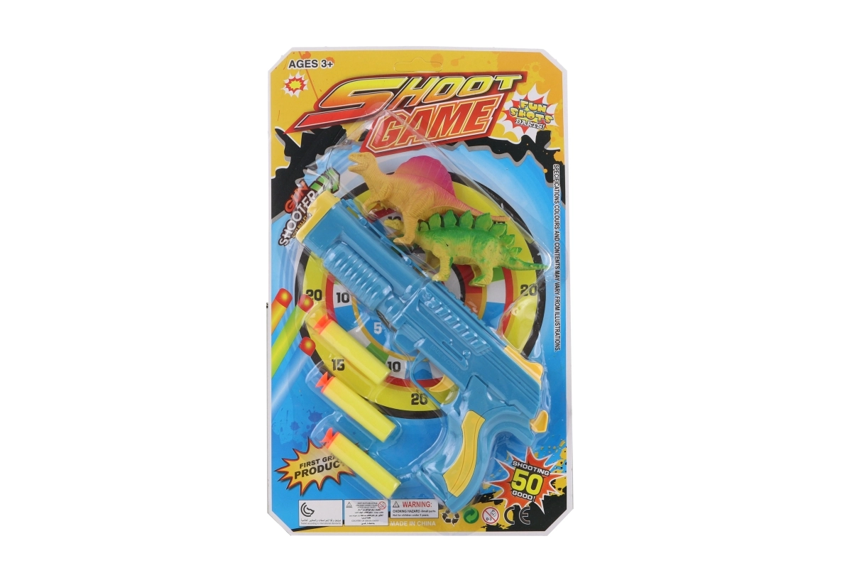 - Pistolet, fléchettes en mousse, 2 figurines de dinosaures