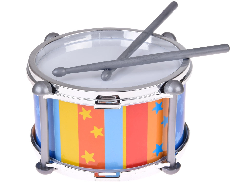 Des rayures verticales colorées avec des étoiles et des cerclages à l’aspect métallique rendent ce tambour à la fois attractif comme jouet et comme cadeau. Jouer du tambour développe la motricité fine, la coordination œil-main, la perception auditive ainsi que le sens musical naturel.