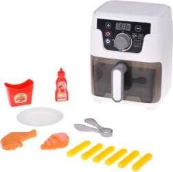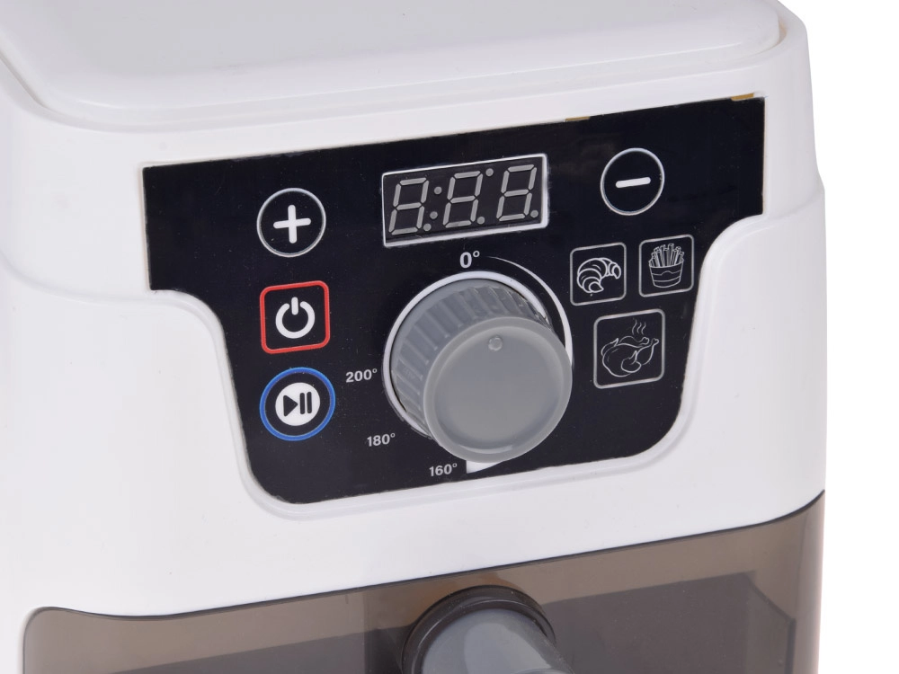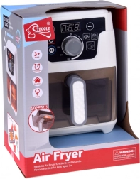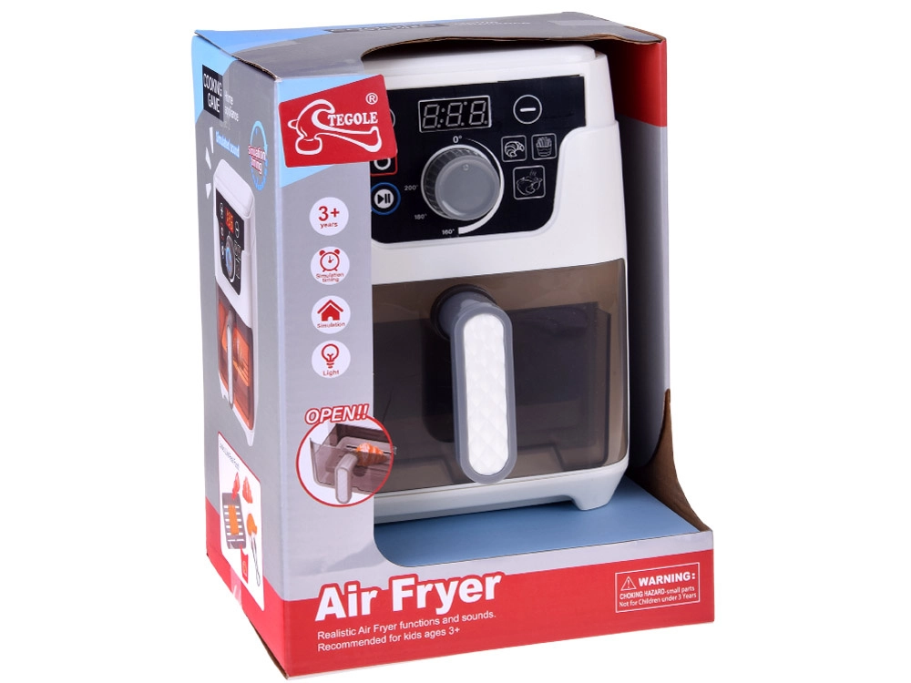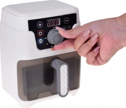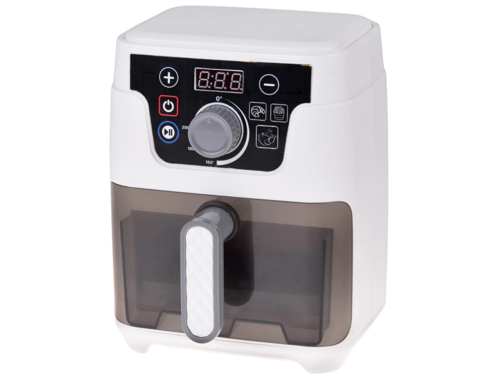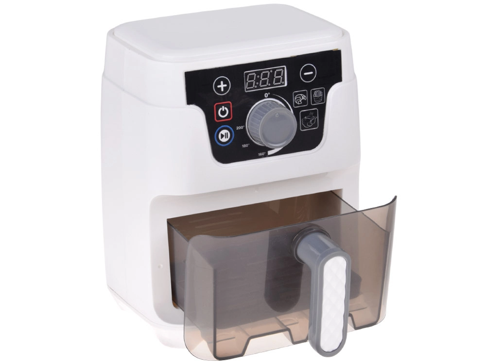 Une petite star de la cuisine en action ! La friteuse AIR FRYER pour enfants au design réaliste avec lumière dans le panier, sons de friture et écran coloré apprend aux enfants les principes de la cuisine de manière ludique. Le contrôle numérique permet de régler le temps et la température et de lancer des programmes automatiques pour viennoiseries, frites et poulet.