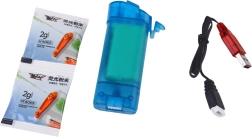 - Pistolet, batterie, chargeur USB, 2 sachets de poudre pour eau fluorescente