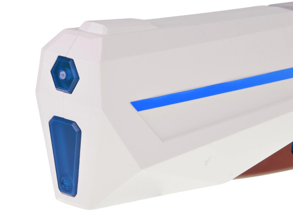 Inclus: batterie 7,4 V 500 mAh, chargeur USB et deux sachets pour préparer de l’eau fluorescente pour des tirs de nuit spectaculaires.