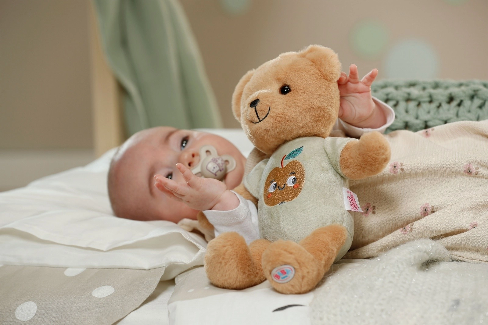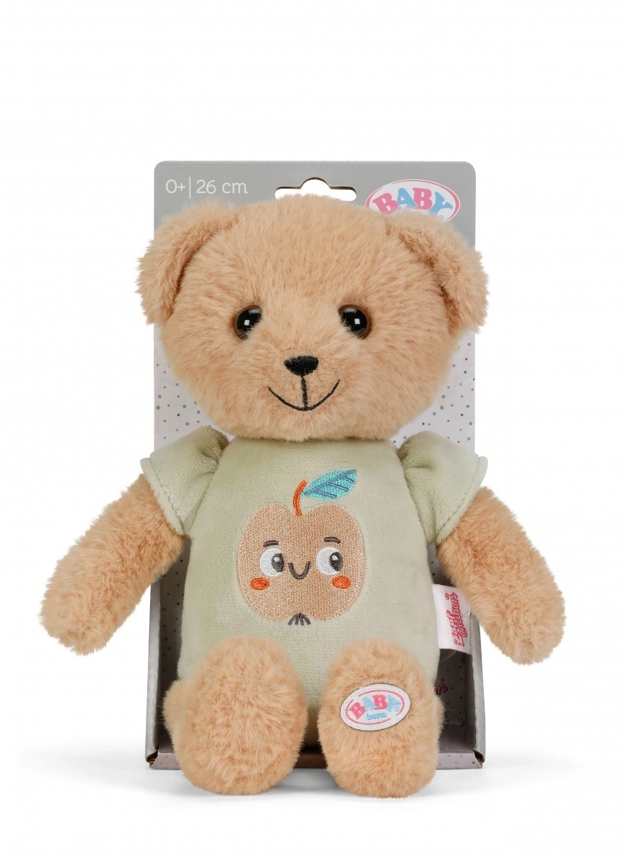 Adorable ourson en peluche BABY born Teddy de 26 cm, compagnon tout doux pour les tout-petits dès la naissance. Il affiche de doux tons pastel, une surface textile agréable et est lavable à 30 °C, pour rester propre et soyeux. Idéal pour câlins, apaisement et premières découvertes, avec un accent sur la sécurité et la qualité de la marque BABY born.