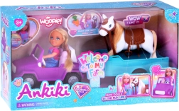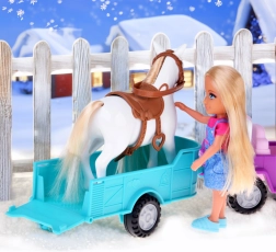 - Poupée Niki, cheval avec selle et bridon, 4x4, remorque détachable, petits accessoires (carotte)