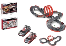 Un agencement étendu avec ponts et virages offre des parcours fluides et des défis techniques. Idéal pour comparer la vitesse et le contrôle de deux véhicules.