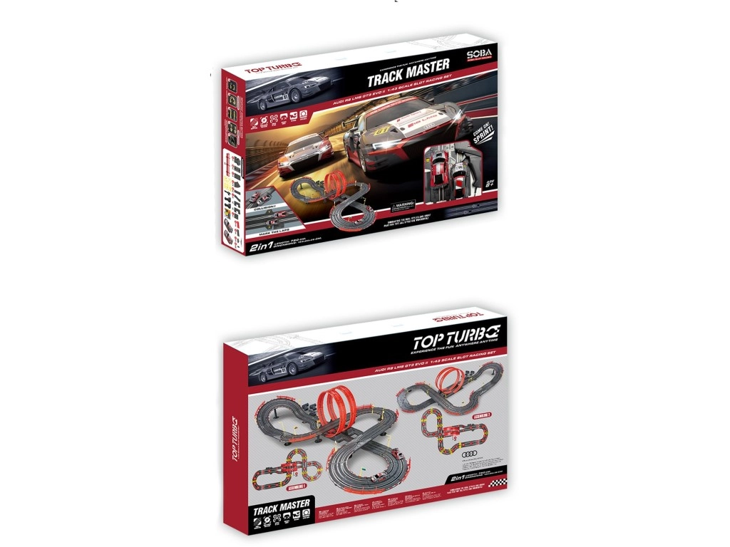 La combinaison robuste de plastique et de métal garantit une grande durabilité tout en conservant un poids faible pour une manipulation aisée. Le montage est intuitif, le rangement peu contraignant, afin que vous puissiez installer et remballer la piste rapidement. Les voitures de course AUDI sous licence, au design détaillé, raviront les petits comme les grands fans de sport automobile.