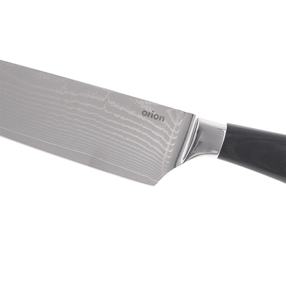 Ce couteau de chef est conçu pour une préparation rapide et précise des ingrédients. La lame large et affûtée en acier damassé 67 couches se distingue par une longue tenue de coupe et une excellente résistance à l’usure. Grâce à son équilibre parfait et à son manche ergonomique, le travail reste confortable et sûr, même lors de sessions prolongées.