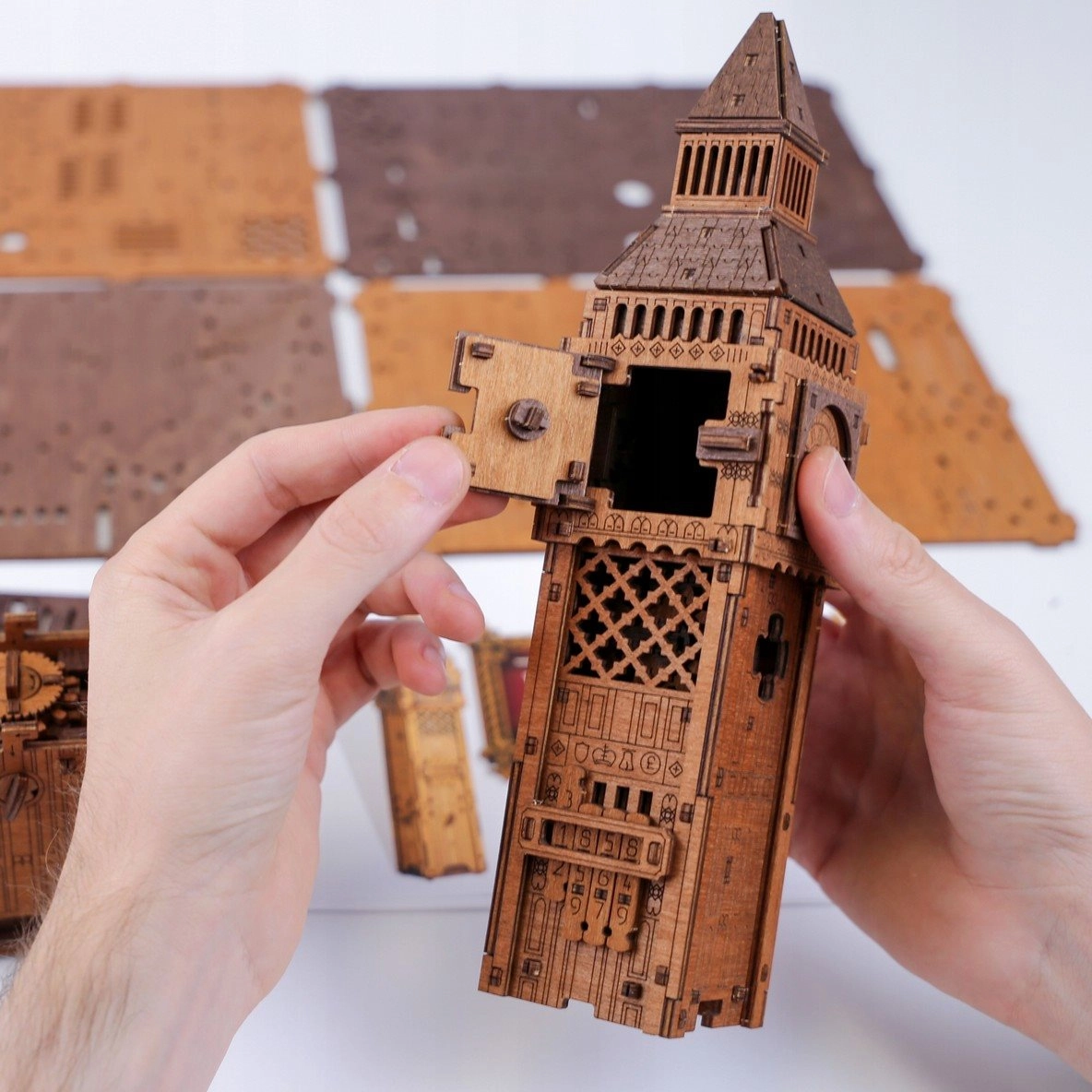 Découvrez des puzzles 3D en bois de la série Escape, qui associent l’emblématique Big Ben à une énigme mécanique ingénieuse. Ce modèle de WOODEN CITY est non seulement une décoration élégante, mais aussi une fascinante épreuve logique pour de longues heures de plaisir. Il se monte sans colle ni outils, en contreplaqué de bouleau de qualité, et séduit par ses détails soignés et le fonctionnement fluide de son mécanisme.
