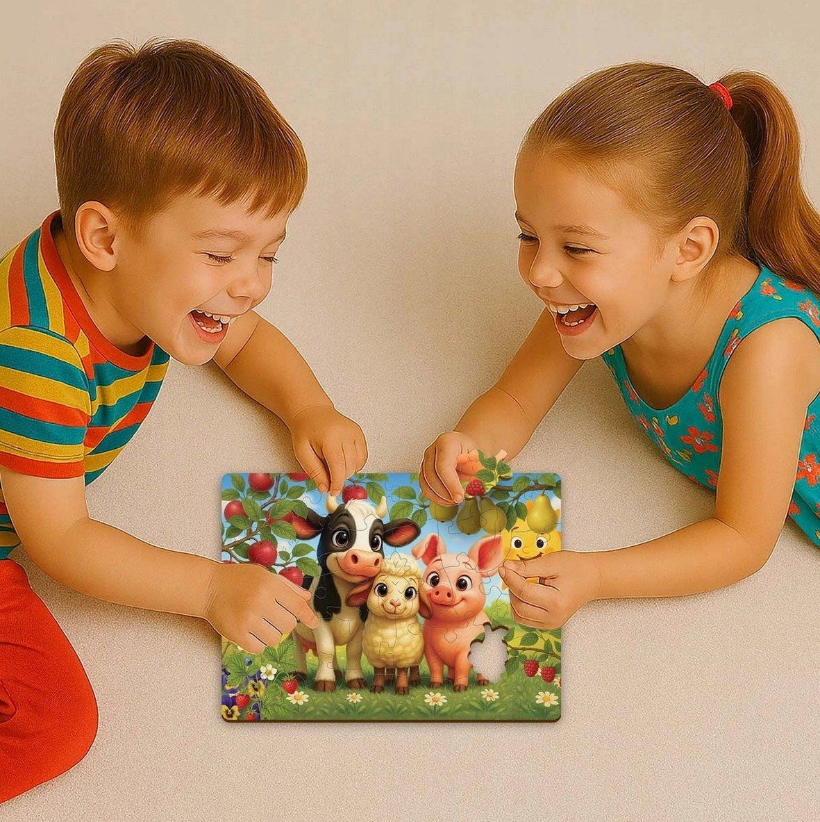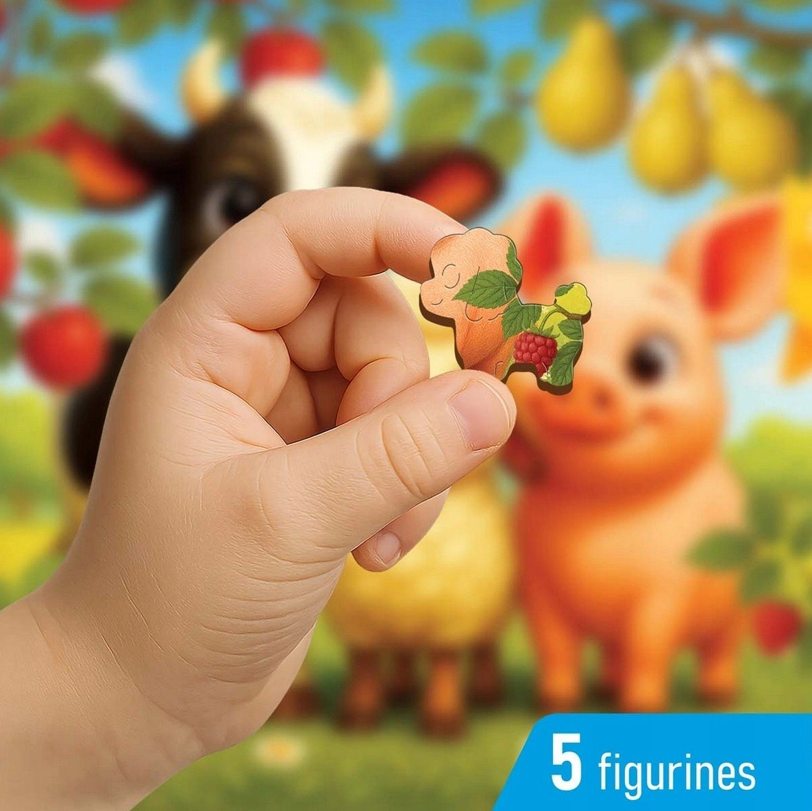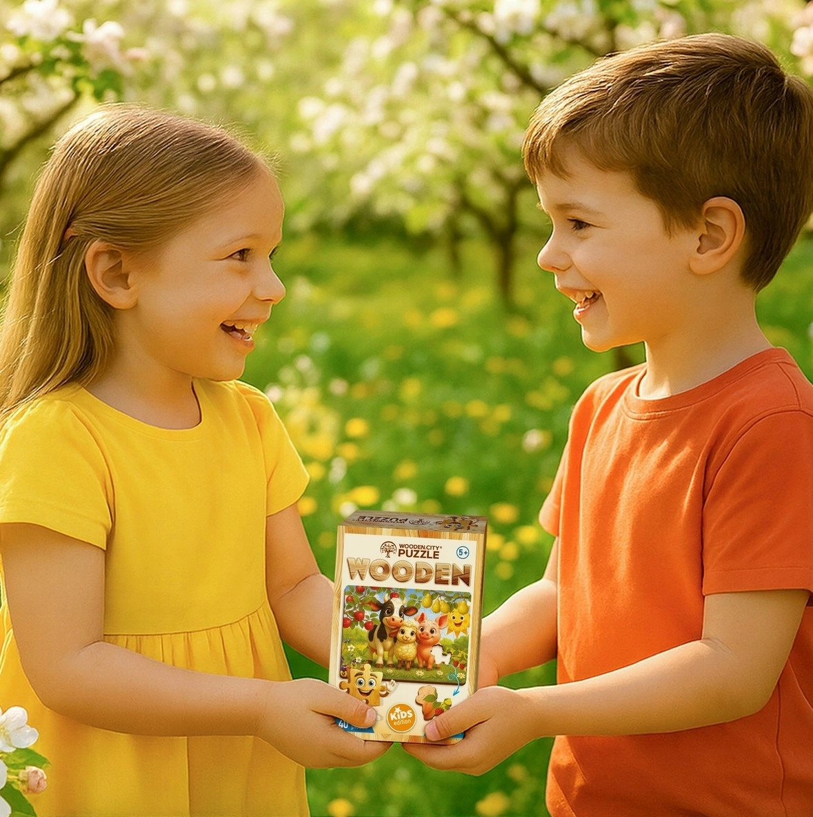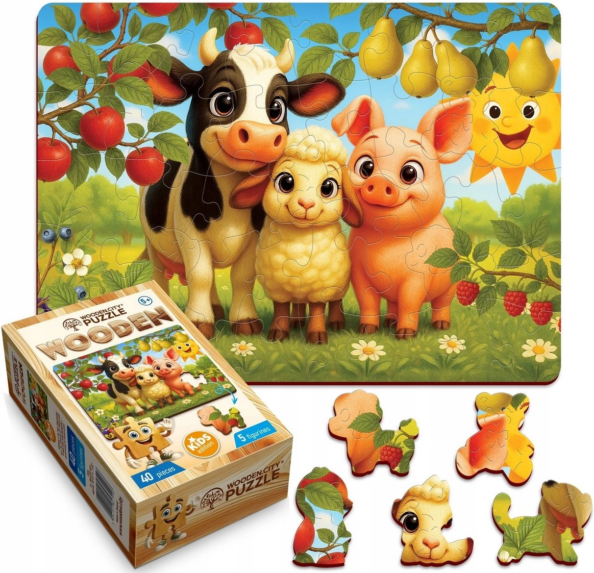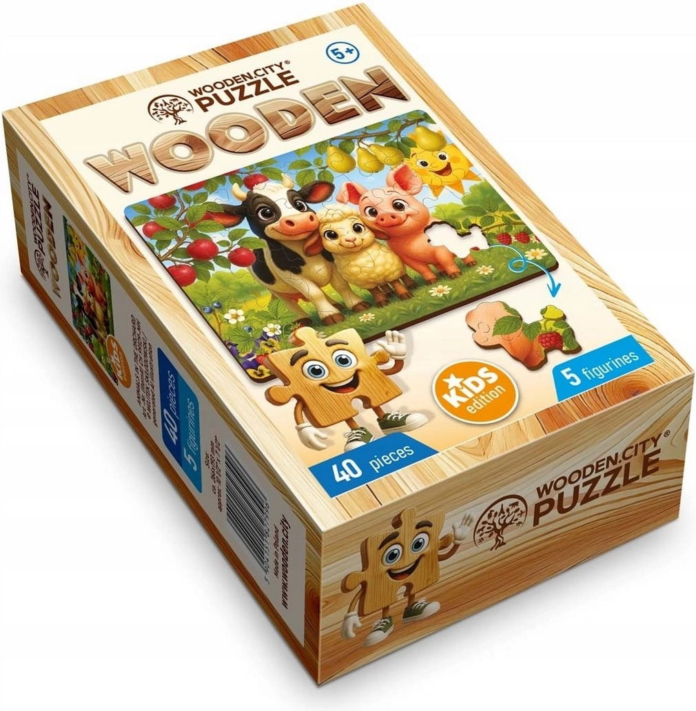 Le puzzle en bois WOODEN CITY allie divertissement et apprentissage. Grâce à une découpe laser précise, les pièces ont des bords parfaitement lisses sans échardes, s’emboîtent à merveille et forment une scène colorée avec des animaux de la ferme. Un modèle séparé est également inclus pour un assemblage confortable.