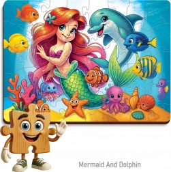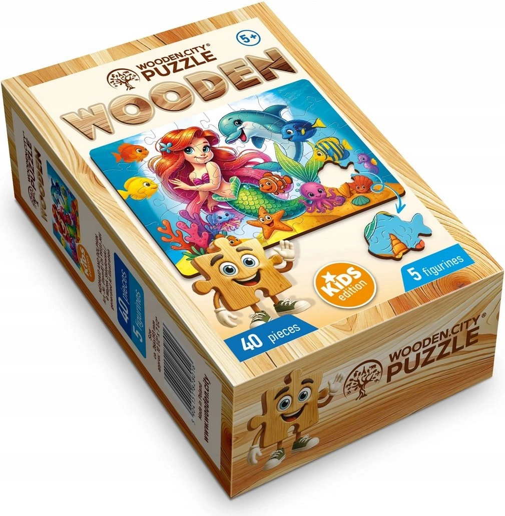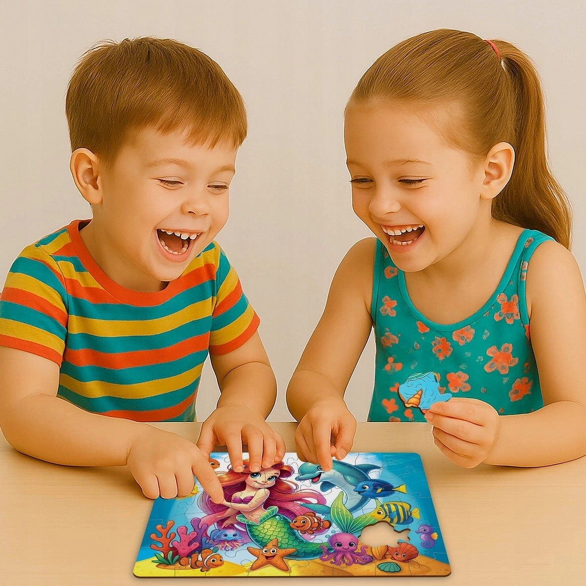 Le puzzle en bois WOODEN CITY avec motif de sirène et dauphin offre aux enfants une belle expérience visuelle et la joie d’un tableau terminé. Grâce à sa fabrication de qualité, les pièces s’emboîtent parfaitement et agréablement. L’image assemblée mesure environ 26,6 × 19,3 cm, idéale pour un montage répété ou pour l’exposition.