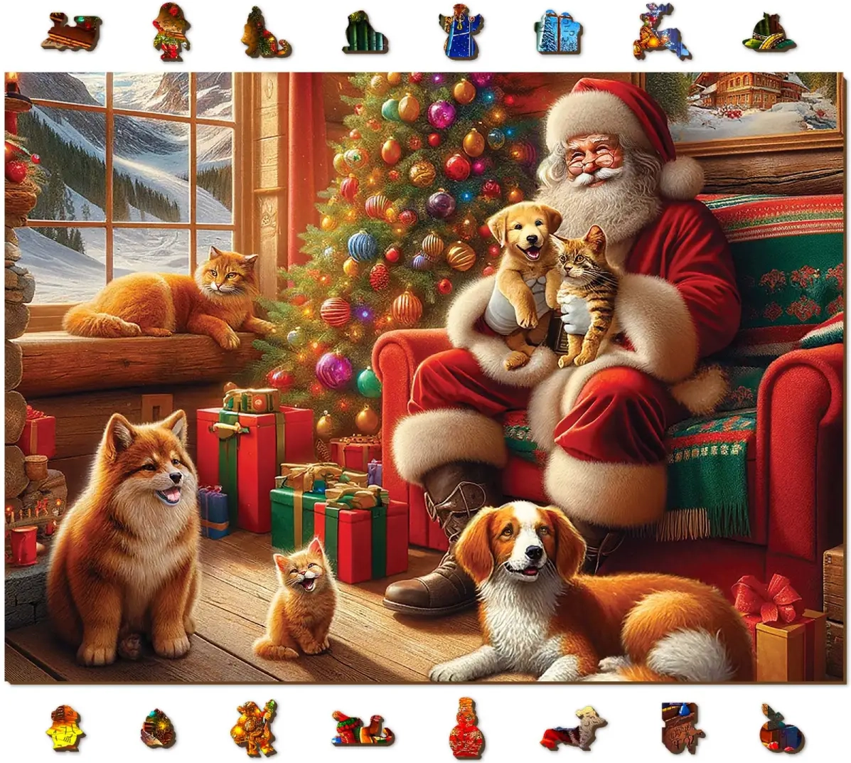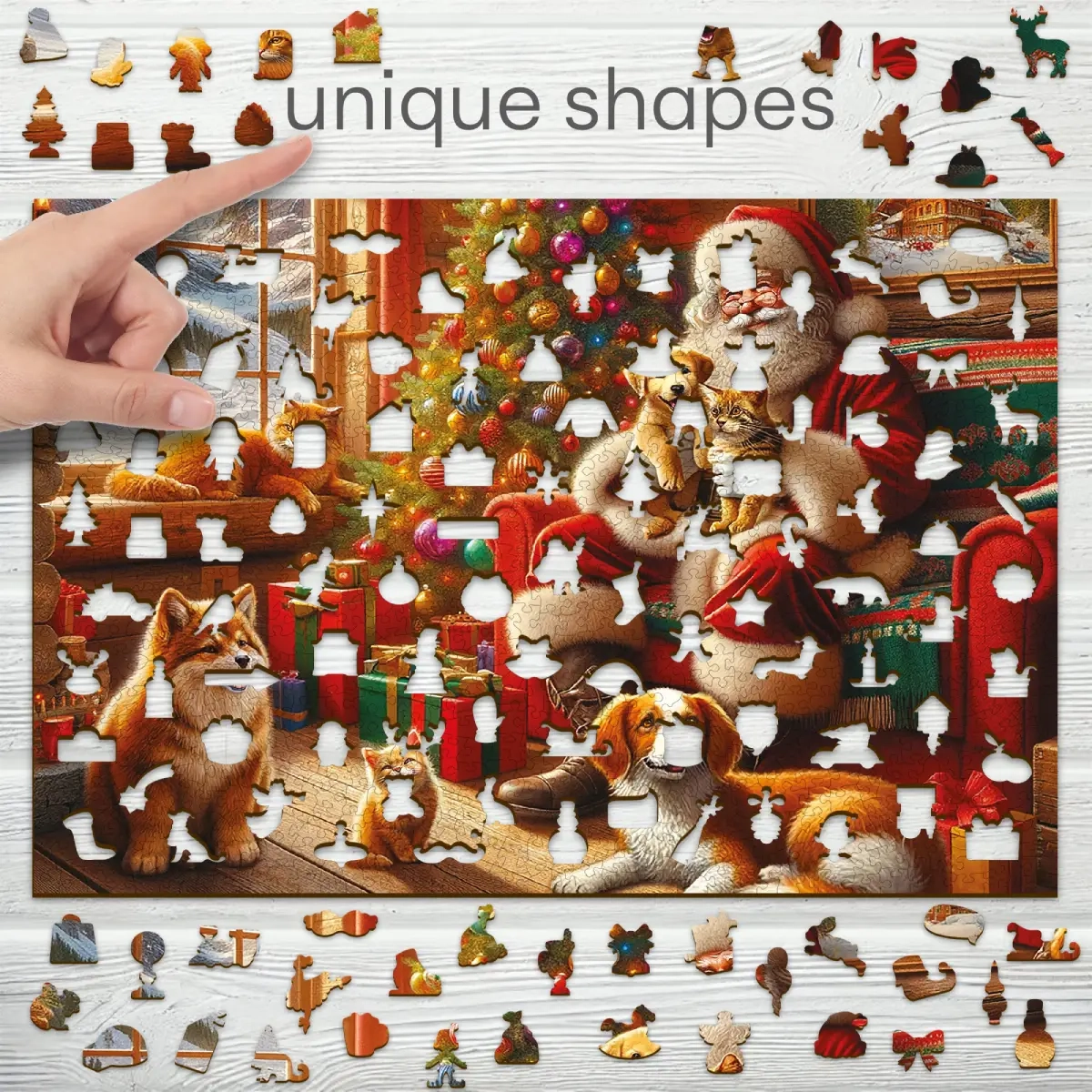 Le puzzle en bois Wooden City Père Noël et ses amis apporte l’ambiance festive directement chez vous. La découpe laser de précision garantit un assemblage lisse et précis, tandis que les pièces spéciales en forme de motifs thématiques raviront tous les amateurs de puzzles. L’emballage contient également un modèle séparé pour un assemblage plus confortable.