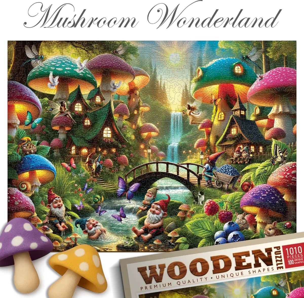 Découvrez la magie de l’assemblage avec le puzzle en bois WOODEN CITY, qui vous entraîne dans le royaume des merveilles des champignons. Il vous attend 1010 pièces, dont 100 aux formes uniques, et des bords lisses et découpés avec précision grâce à la technologie laser. Inclus une affiche de référence séparée et un emballage éco-responsable, 100 % sans plastique – un cadeau idéal pour toutes les occasions.