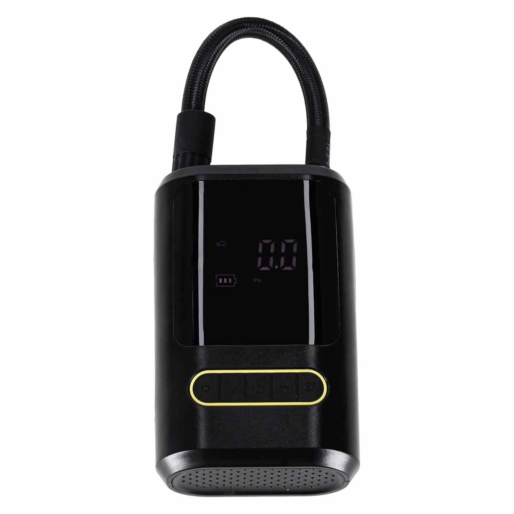 Pompe sans fil compacte 3‑en‑1 combinant mini compresseur, powerbank et lampe LED avec SOS. Grâce à son écran numérique, à ses embouts interchangeables et à une pression max. de 150 PSI (10 bar), regonflez facilement pneus de voiture ou de vélo, ballons et gonflables – partout et à tout moment.