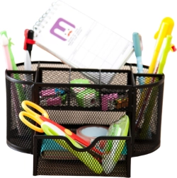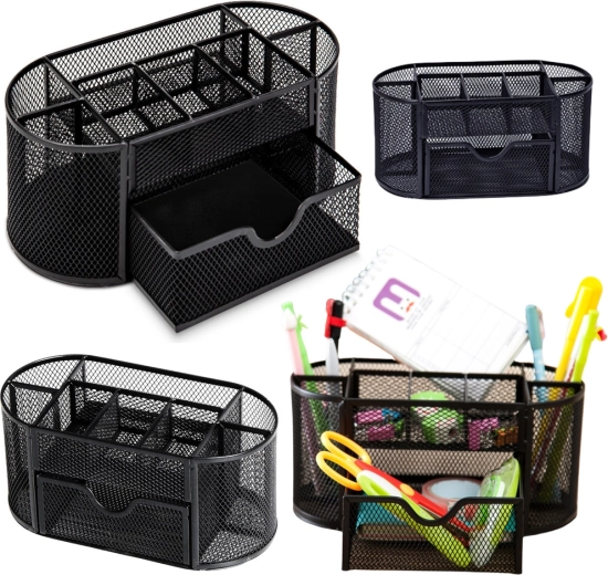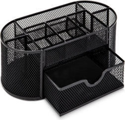 Une répartition pratique offre 6 compartiments dont un petit tiroir coulissant pour les petites pièces. L’organisateur est stable, résistant et prêt pour une utilisation quotidienne. Ses dimensions compactes économisent de l’espace tout en offrant suffisamment de place pour fournitures d’écriture, carnets, trombones et autres essentiels.
