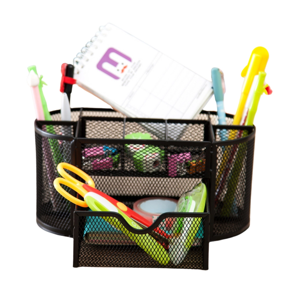 Agencement segmenté et tiroir pratique pour garder crayons, ciseaux, surligneurs et petites fournitures exactement là où vous en avez besoin.