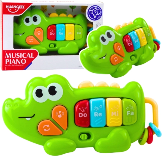 Un petit piano interactif coloré en forme de crocodile ravira chaque petit explorateur. Il propose quatre touches Do, Ré, Mi, Fa, des mélodies et sons joyeux ainsi que des anneaux de manipulation supplémentaires pour développer la motricité fine. Grâce à ses dimensions compactes, il est idéal à la maison comme en voyage, et sa conception sûre aux bords arrondis est adaptée aux petites mains des enfants.